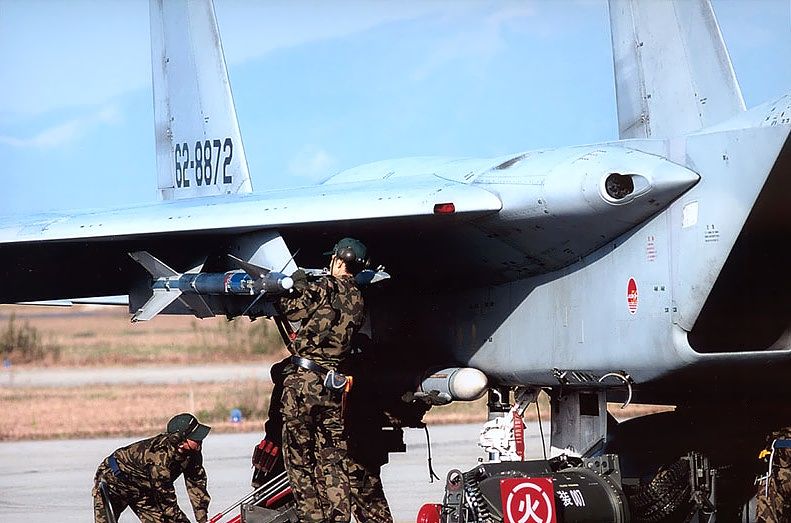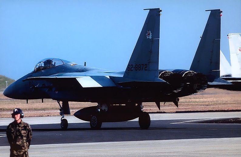この日は、とっても穏やかな快晴でした。 300mmレンズで狙いました。 動いているF15のスパロー(?)付き 初めて撮りました。 うれしいでした。