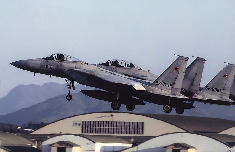 2008. 2月上旬 23SQ機 RW28離陸 2月上旬 視界・天候ともに最高に良い日でした。 恒例の 小松のFWが行われ、AGRと 4×4 で 飛びました。