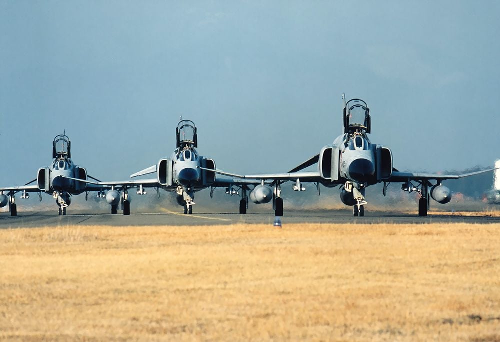 新田原基地のRW28エンドで、2000年頃の冬と夏に撮ったF4EJです。