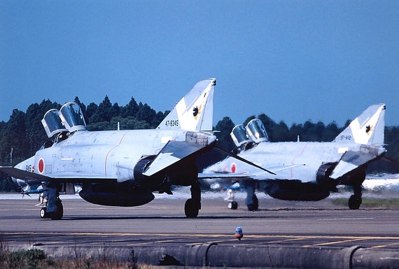 新田原基地開催の戦競(2回目)が1997年5月末に行われました。 戦競期間中に、421号機の垂直尾翼に「二つ星」が書き込まれました。 ヘイズ等でなかなか競技が成立せず、全部隊撮るのに1週間かかりました。 (その間、仕事もほとんどほったらかしで、その後職場でひんしゅくをかいました。)