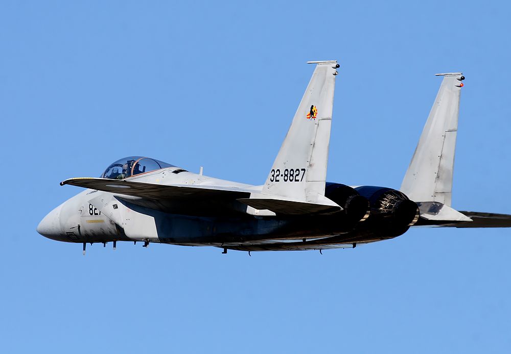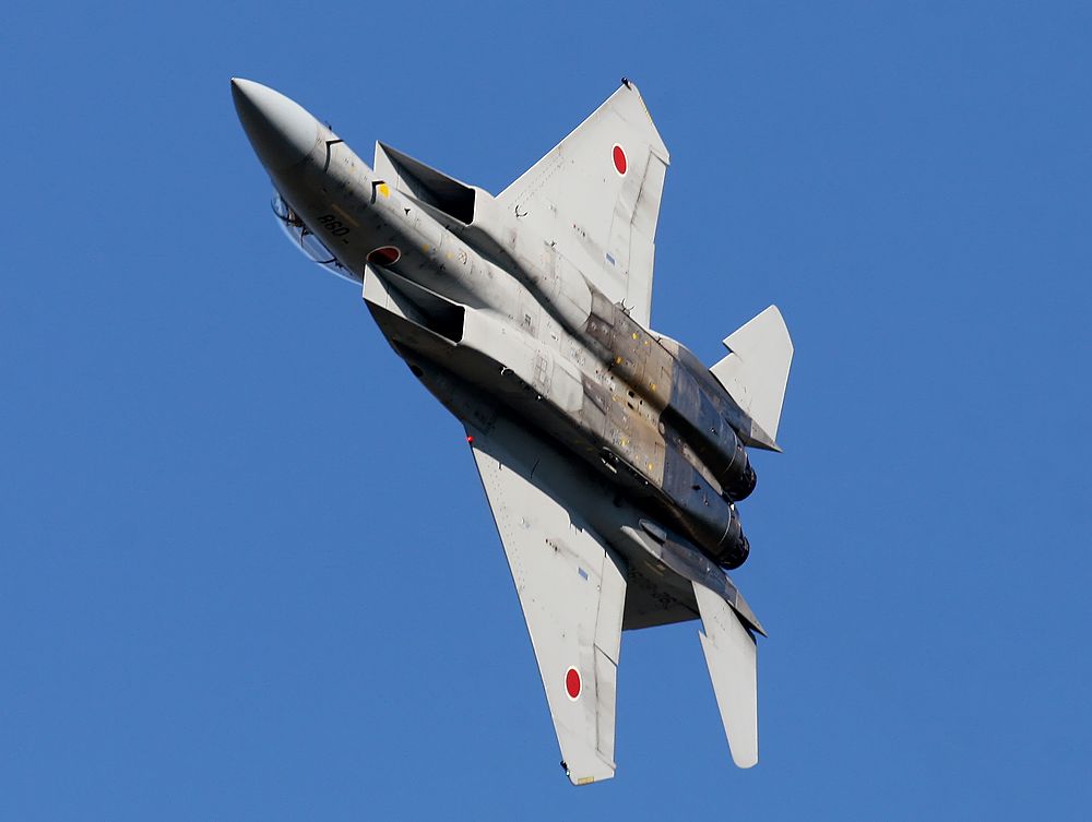 2011年11月上旬〜下旬、 新田原基地のF15がパイロンもタンクも付けないクリーンな状態で 飛行していました。 私は、タンク無しのF15はあまり目にしたことがありません。 別の機体に見えました。