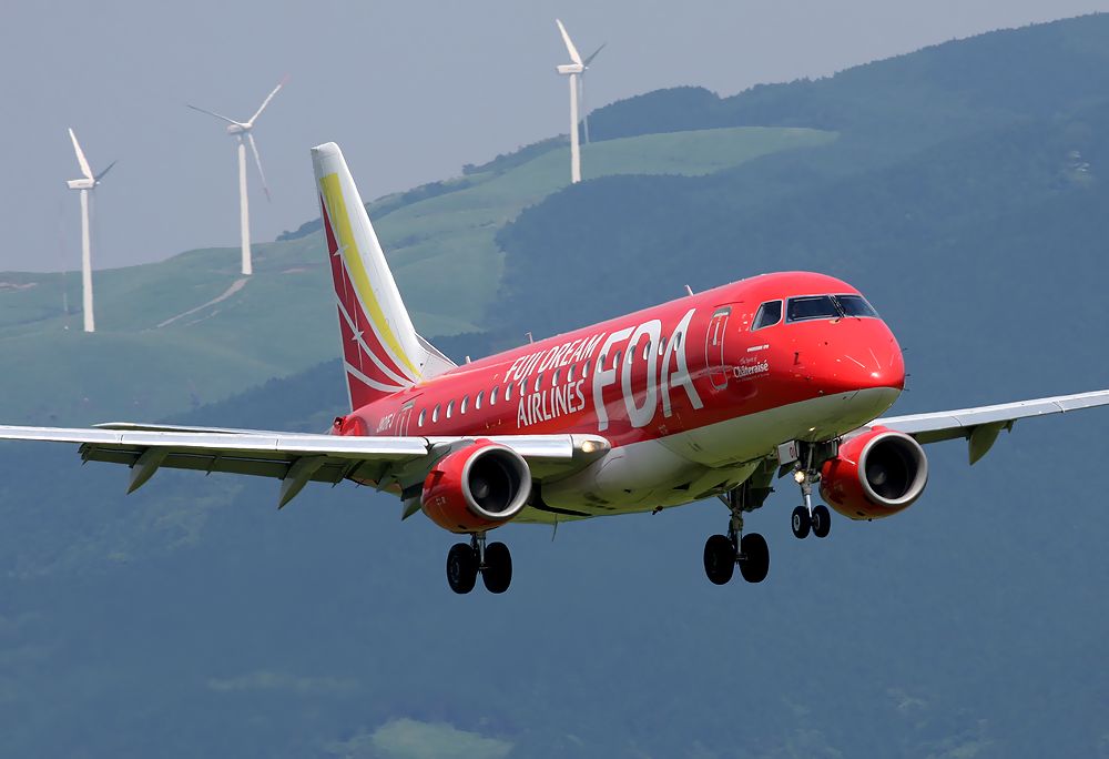 阿蘇山の方から フジドリームエアラインの機体が降りてきました。