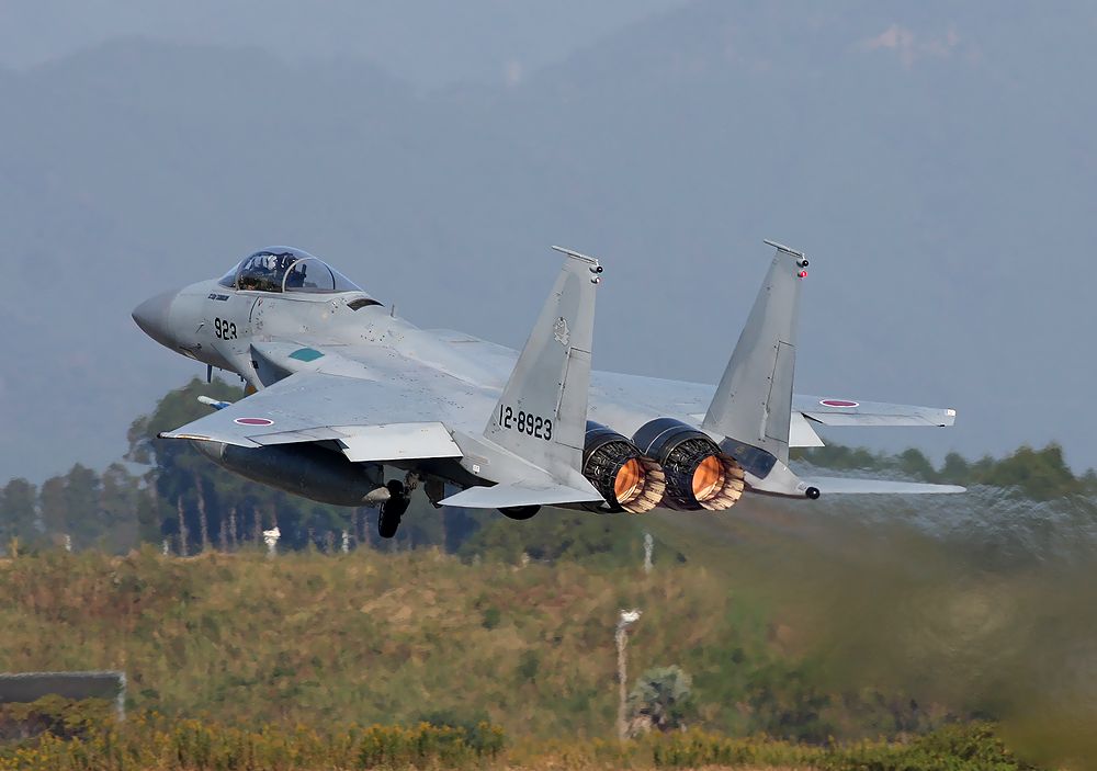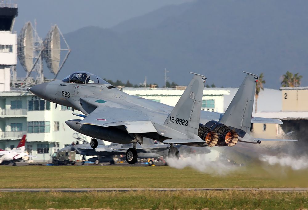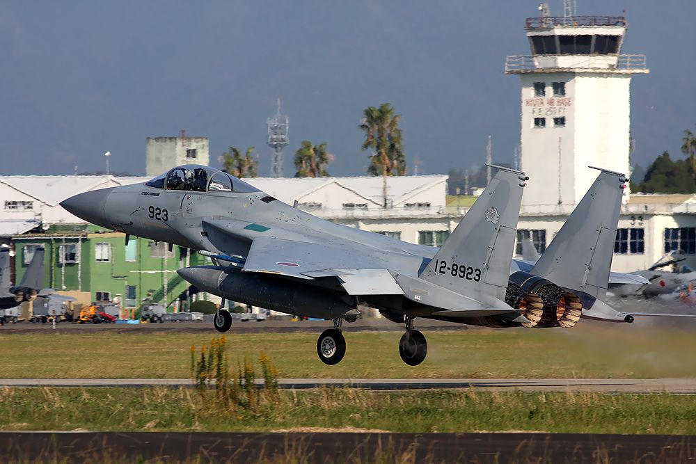 AM9:00 5部隊のF15とF2が4機づつ合計22機が一挙に離陸しました。