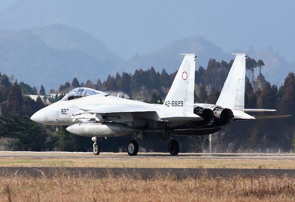 2019年3月4日(月)、新田原基地でホットスクランブルした、 305SQのF15×2機が降りてきました。 RW10で降りた後、RW28エンドでUターンしてRW上を タキシーバックしてアラートハンガーに戻りました(^^)。 F15はスパローを機体の左側に付けているので、 こういう時ときでないと、スパローを見ることができません。