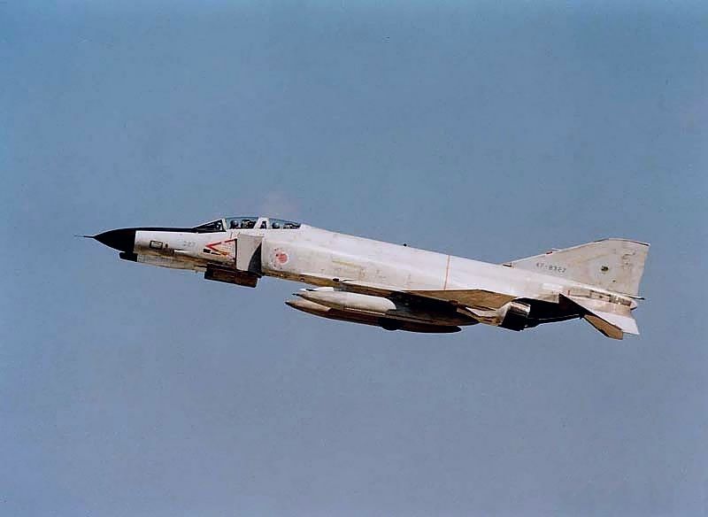 1986年の新田原基地は、 6月にF4 ×2機が燃料不足で墜落、9月初旬にT2AGRが墜落と 悲惨な事故が相次ぎました。 そのために、同年9月は飛行停止になりました。 飛行再開から2日後の1986年10月3日に新田原基地に行きました。 202SQのF15と301SQのF4が低視認塗装を行っていました。 (全国の戦闘部隊の基地で行われていたようです。) 機番、部隊マーク及び日の丸の縮小化と、その上からオーバースプレイ を行っていました。