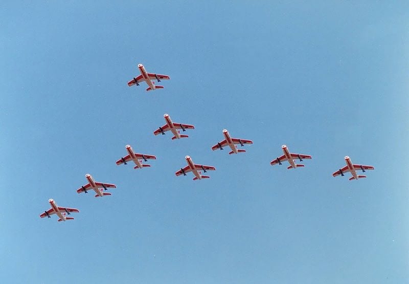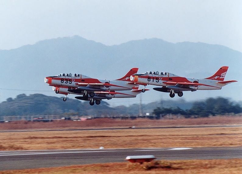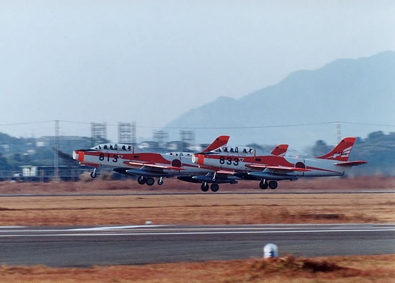 1987年11月22日に芦屋基地航空祭に行きました。 芦屋基地といえば、初の国産ジェット練習機であるT1がいました。 この日も、T1が大編隊飛行を見せてくれました。