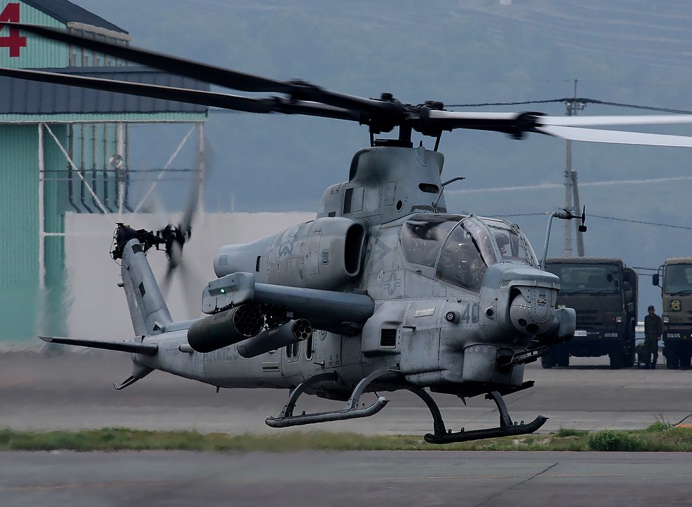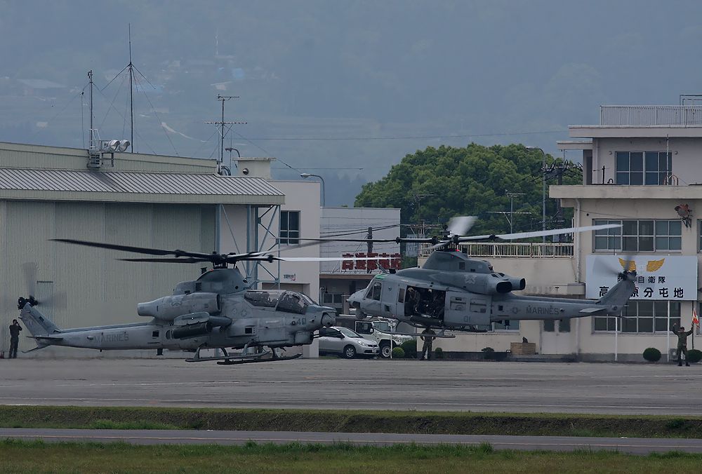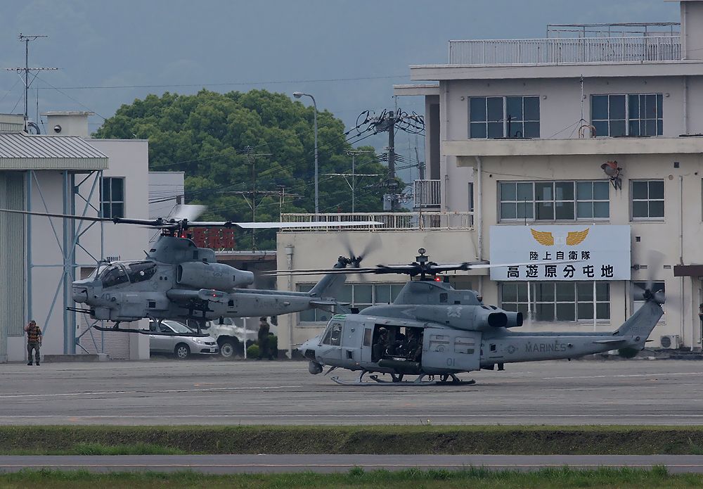 2018年4月18日(水)午後1時15分ごろ 普天間基地の AH-1Z ヴァイパー と UH-1Y ヴェノムの2機が 熊本空港に 予防着陸しました。 UH-1Yのオイルの冷却装置に不具合が生じたとのこと。 翌 2018年4月19日(木)早朝、地元の熊本空港に通いました。 でも、この日は離陸しませんでした(TT). 2018年4月23日(月)早朝、 「まだ米軍ヘリはいるかなあ。」 と熊本空港に行きました。 まだ、米軍へりが駐機していました。 AM8:00頃沖縄に向けて離陸しました。 世間の騒ぎをよそに、マニアとして大喜びしました。 AH-1Z ヴァイパーの離陸です。