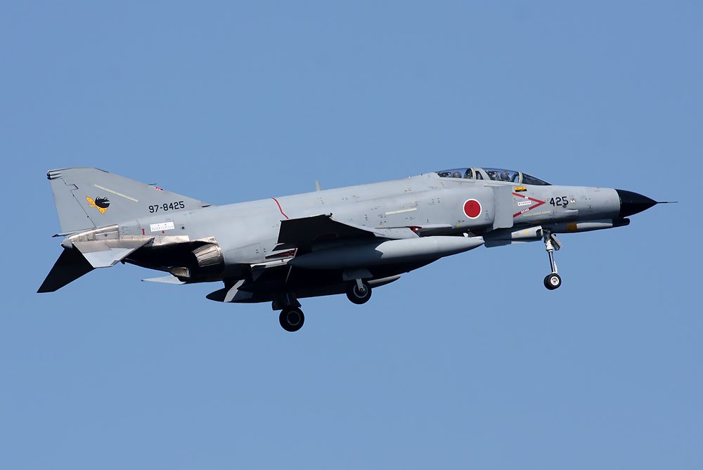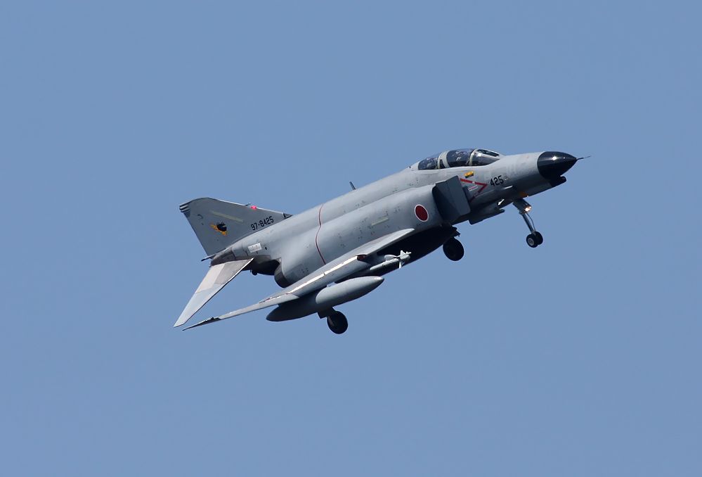 2016年3月2日(水)に新田原基地に詣出ました。 2016年中に、301SQのF4が百里基地に、AGRが小松基地に移駐します。 今のうちに、できりだけ多くのショットを残したいとの気持ちでいっぱいでした。 AM11:40 RW10の降りポイントに行きました。 先にスクランブルで離陸した301SQのF4が、 RW10からオーバーヘッドアプローチしました。 胴体後部に スパロー2発付けています。