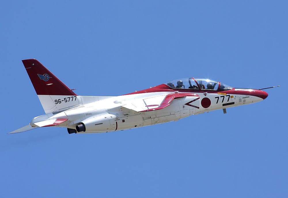 築城基地の近くの芦屋基地からよく紅白塗装のT4が飛来して通過します。