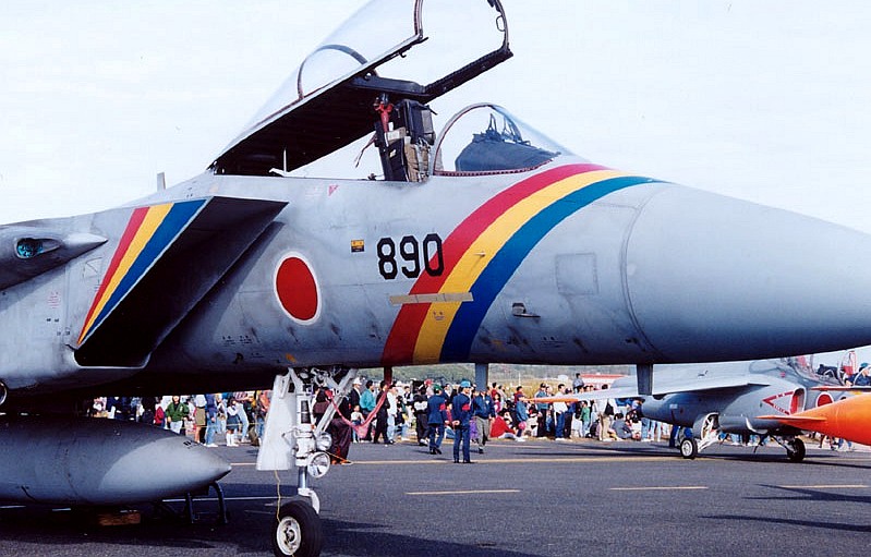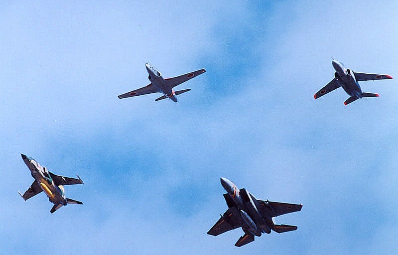 この日は、築城基地開庁50周年とのことで、F15、F1、T33、T4に
