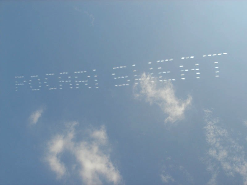 3回目で大空に「POCARI SWEAT」の文字が出来上がりました。
