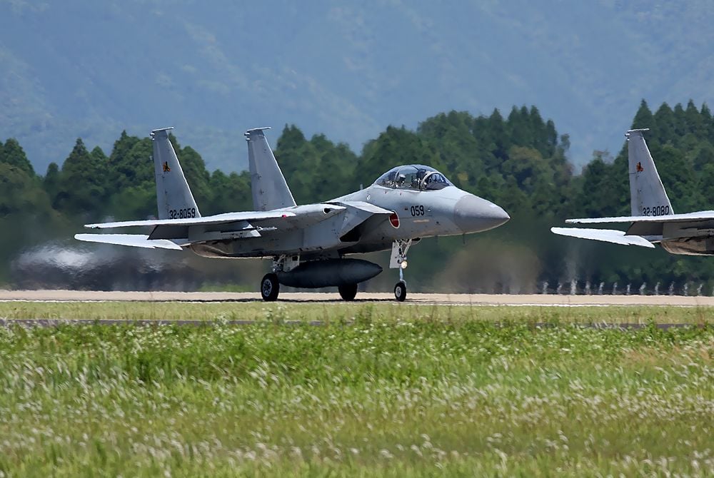 朝10時頃、F15のパイロット養成部隊の23SQの編隊離陸です。