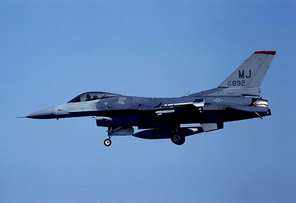 これは1996年02月22日に新田原基地で開催された日米共同訓練に参加した三沢基地の米空軍のF16です。