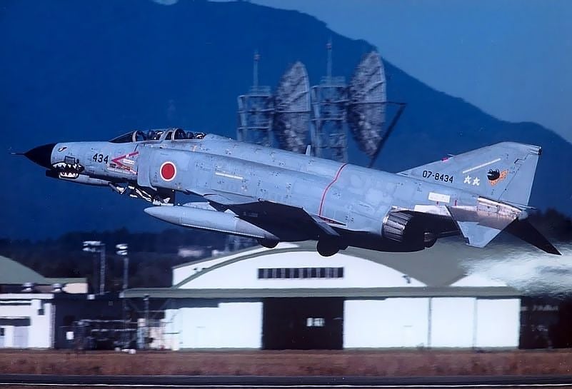 2003年12月上旬の新田原基地です。 301SQのF4 434号機(戦技競技会時の隊長機)の離陸です。 It is the Nyautabaru base in early December 2003.Takeoff of F4 No. 434 (captain's aircraft at the time of the tactical competition) of 301SQ.