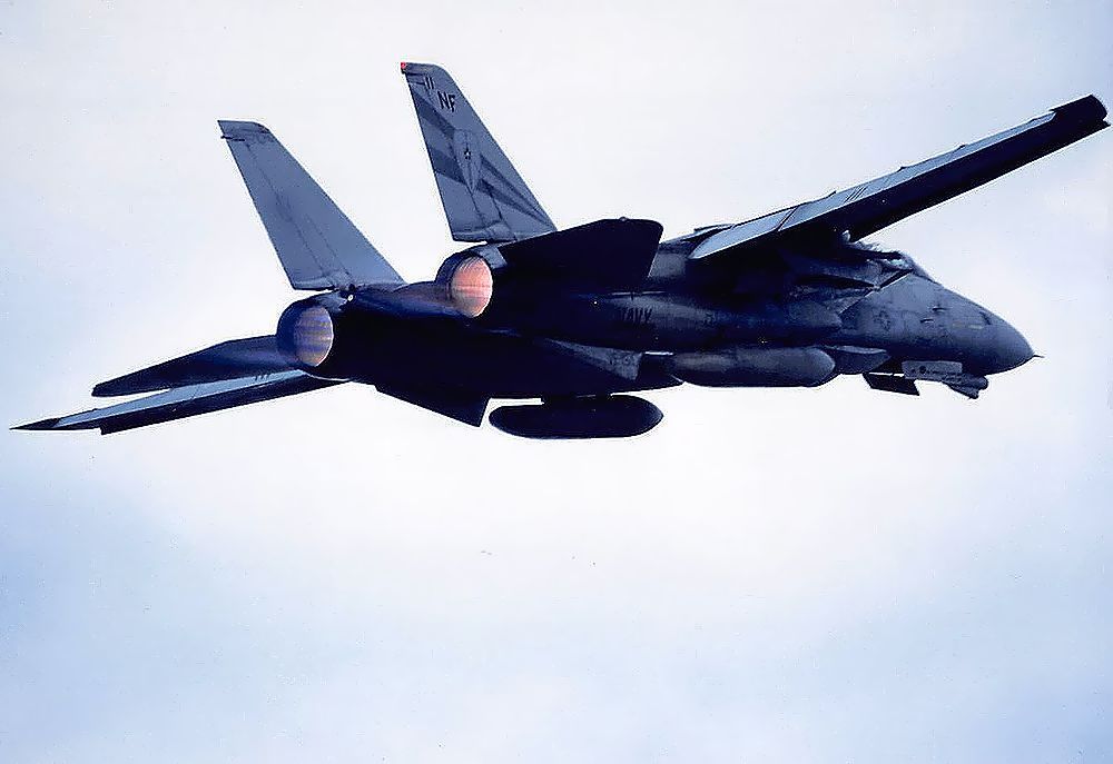 これは1996年11月24日の早朝に新田原基地航空祭に飛来した厚木基地の米海軍のF14の帰りです。