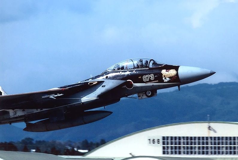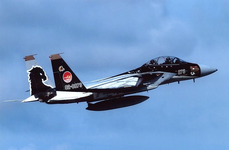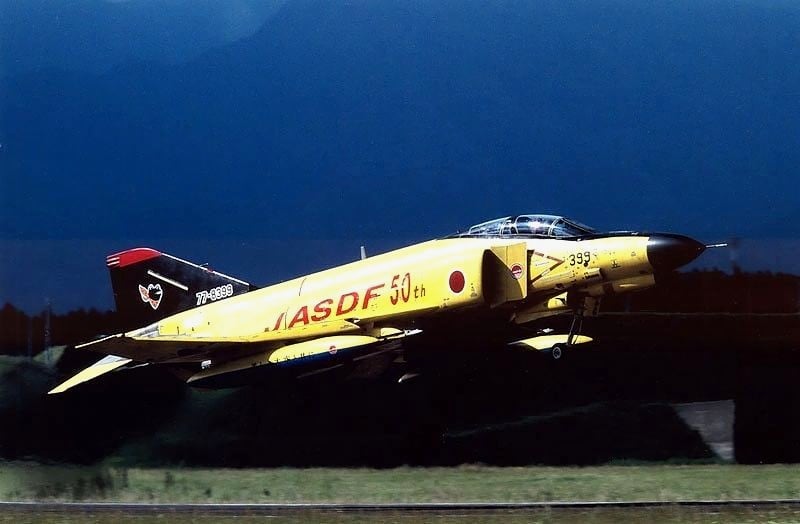 航空自衛隊50周年記念塗装の23SQのF15と301SQのF4が、
