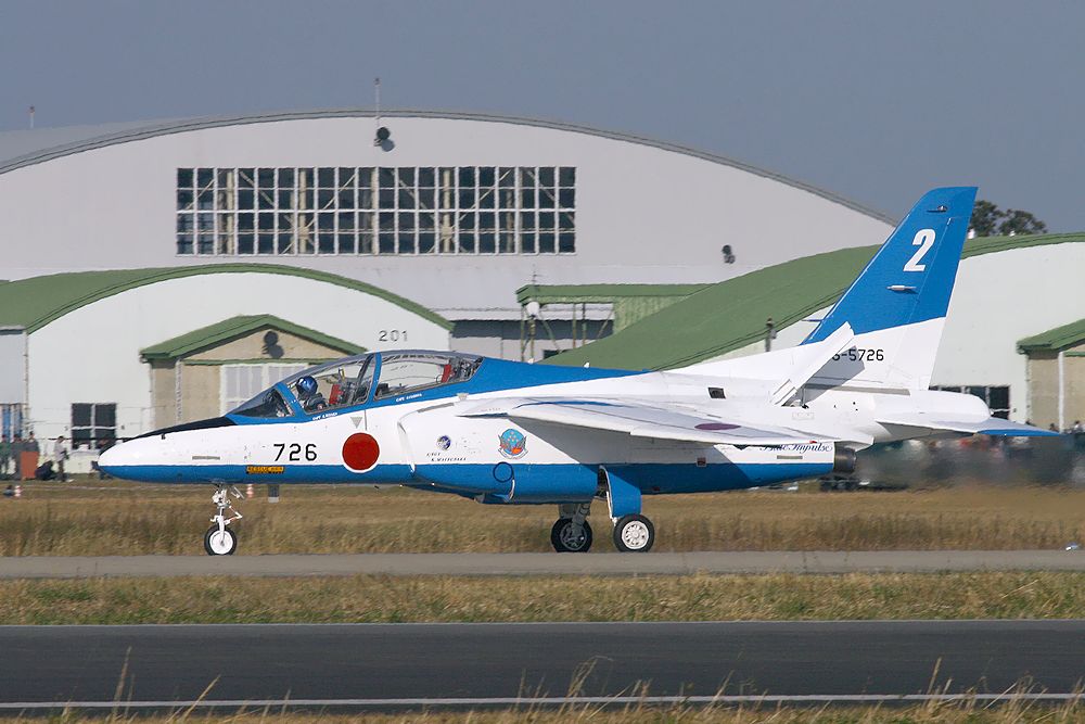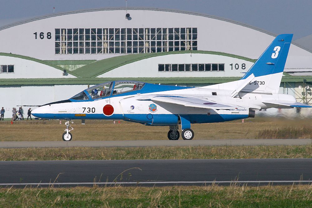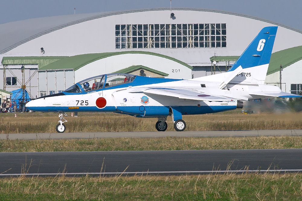 これは飛行演技を終えてタキシ―するT4ブルーインパルスです。