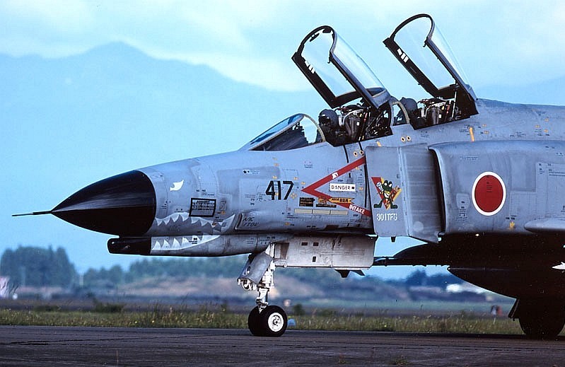これは新田原基地のRW28エンドで撮影したシャーク付きF4-417号機です。