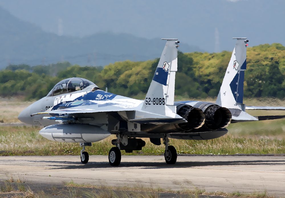 F15-073号機は機体に、新田原基地開庁50周年(2007年)記念のエンブレンムを貼っていました。