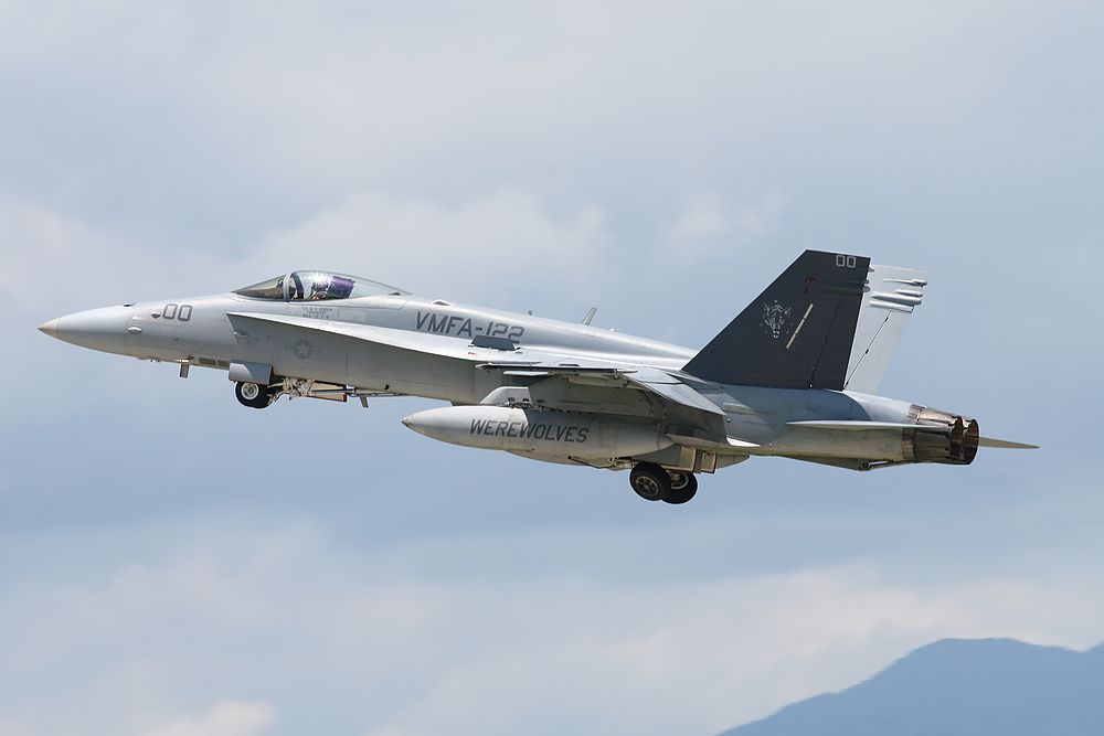 これは2013年6月中旬に新田原基地で撮影した岩国基地から飛来した米海兵隊のFA18(VMFA122)の離陸です(No.2)。