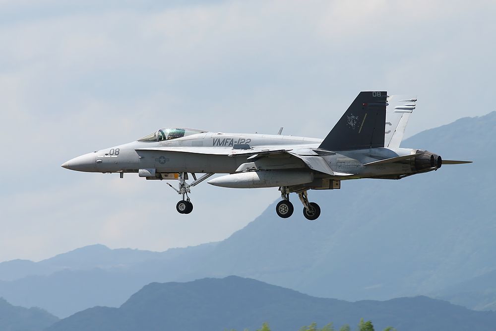 2013年6月中旬の新田原基地で撮影した岩国基地のFA18の着陸です。
