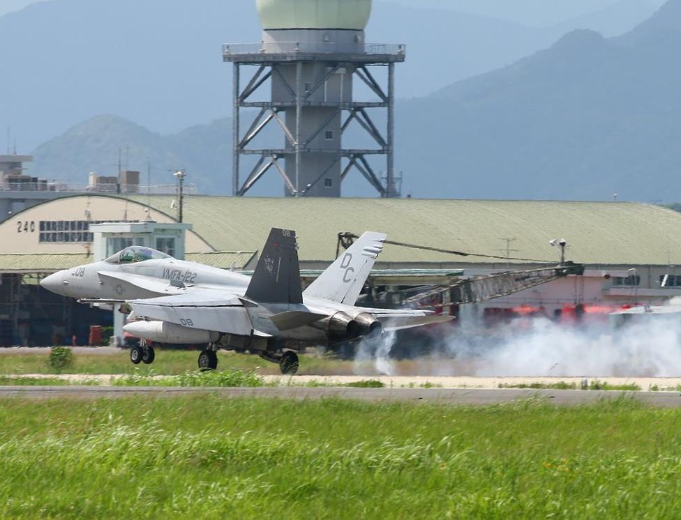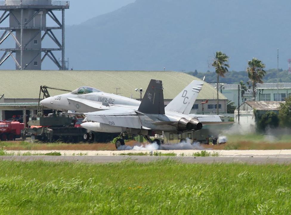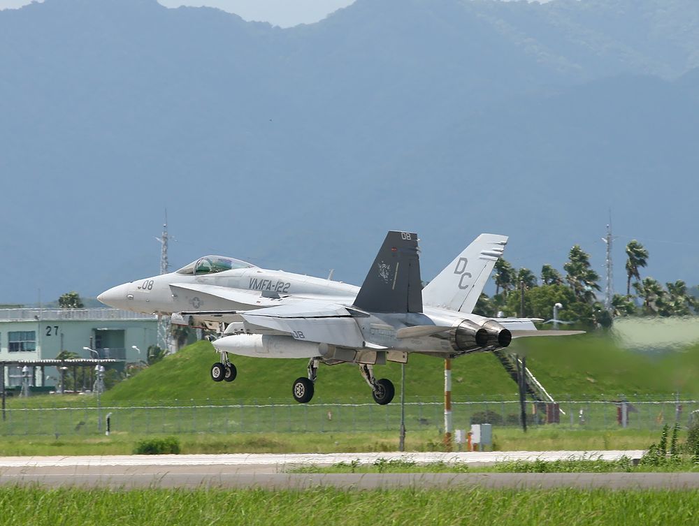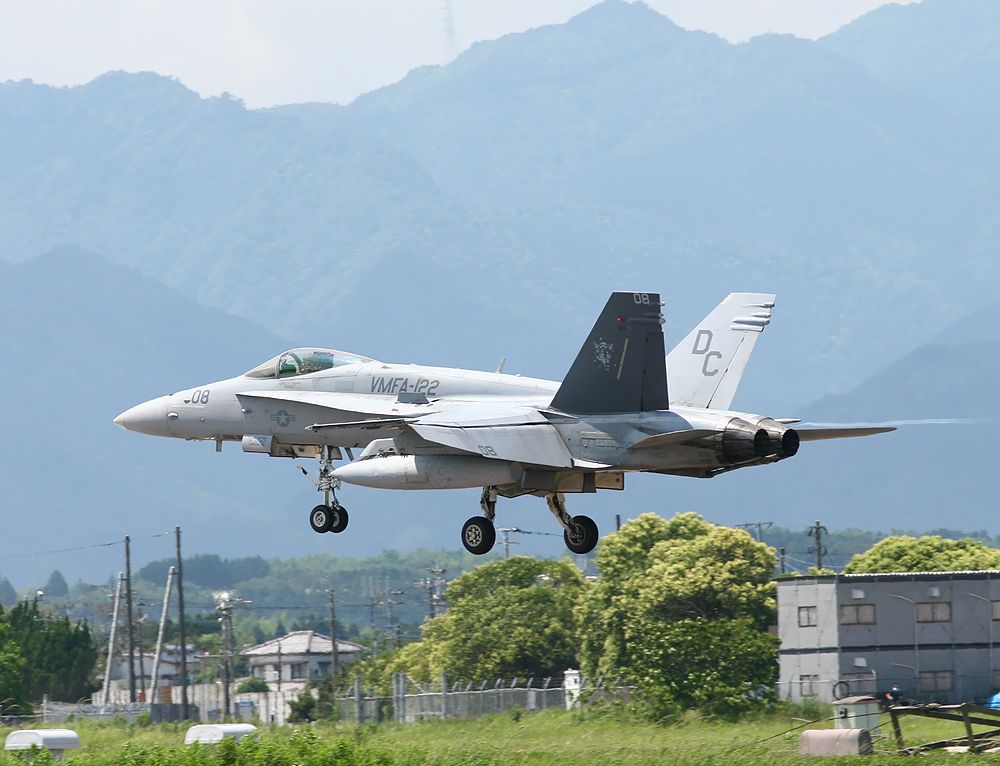 2013年6月中旬の新田原基地で撮影した岩国基地のFA18の着陸です。