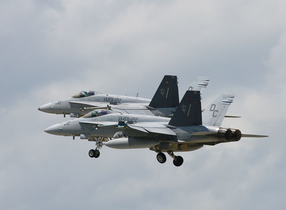 2013年6月中旬の新田原基地で撮影した岩国基地のFA18の編隊離陸です。
