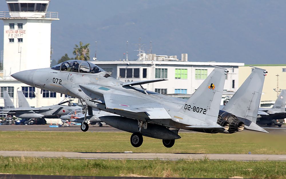 これはその訓練の合間にオーバーヘッドアプローチして降りてきた23SQ(新田原基地所属のF15操縦教育部隊)のF15DJ-072号機です。