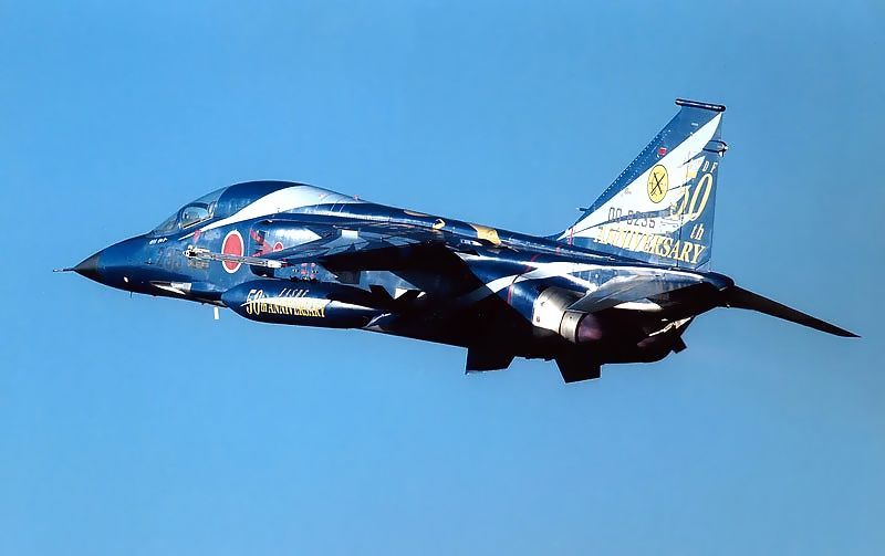 これは航空祭終了後に、築城基地へ帰る航空自衛隊創設50周年記念塗装の6SQ-F1です。