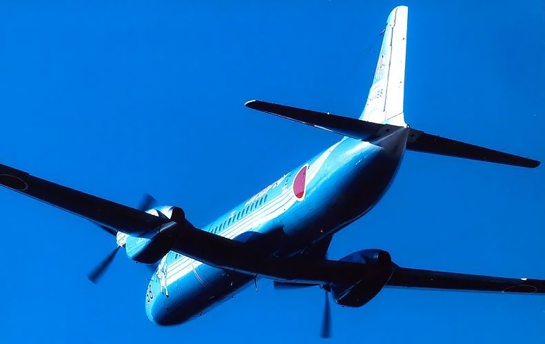 これは航空祭終了後に、美保基地へ帰る航空自衛隊創設50周年記念塗装のYS11です。