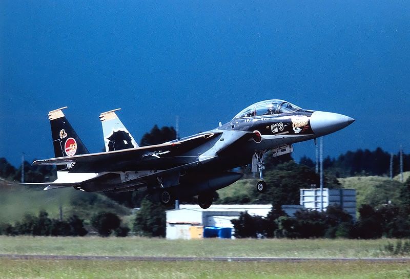これは2004年10月6日に新田原基地で撮影した航空自衛隊50周年記念塗装の23SQーF15DJの離陸です。