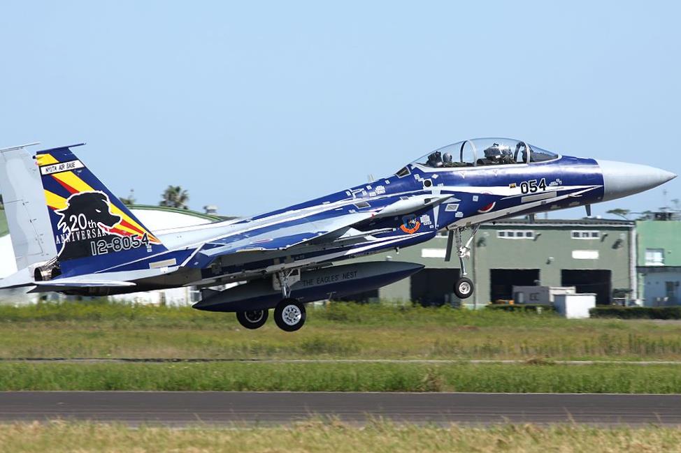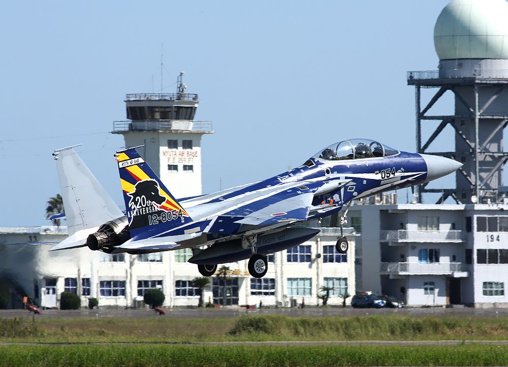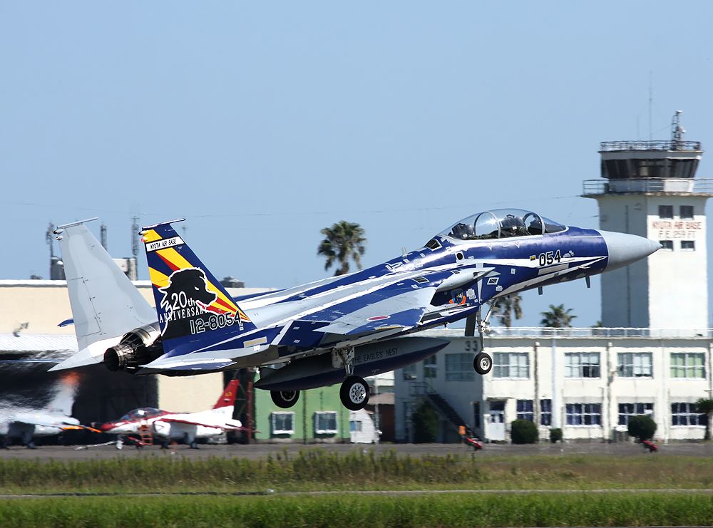 に新田原基地で撮影した23SQの創隊20周年記念塗装F15DJのRW10離陸です。