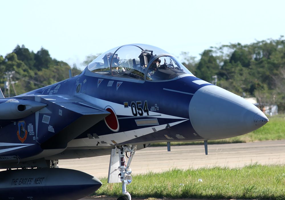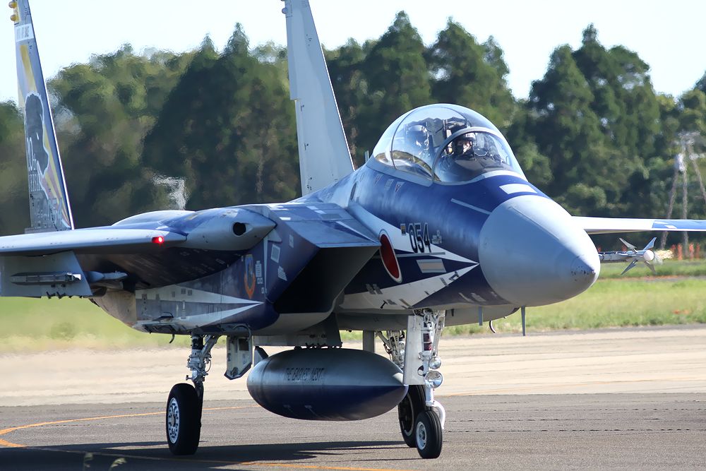 の午後に新田原基地で撮影した23SQの創隊20周年記念塗装F15DJのRW28エンドタキシ―です(No.2)。