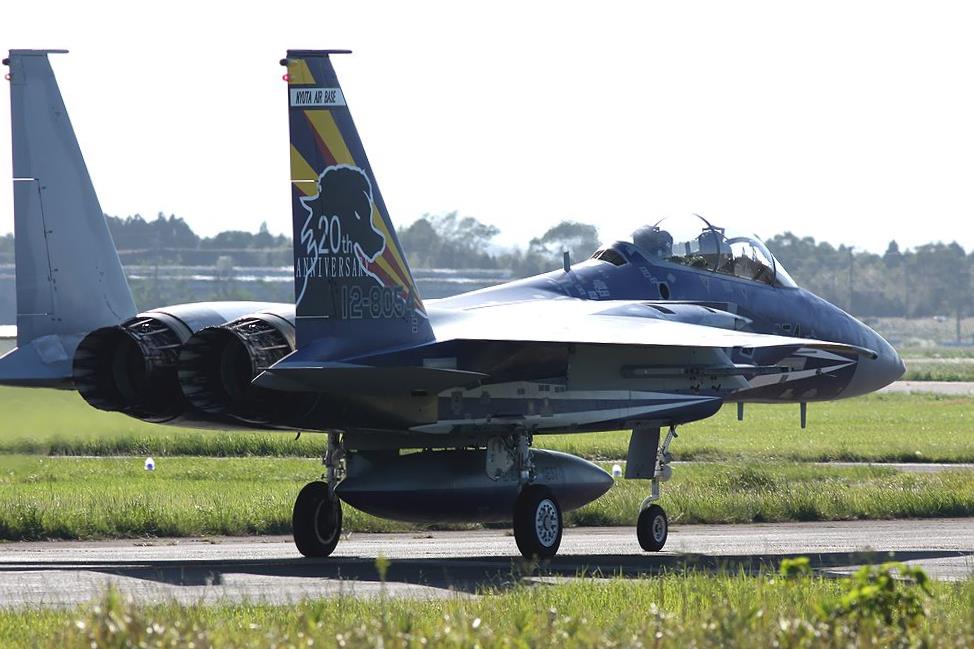 の午後に新田原基地で撮影した23SQの創隊20周年記念塗装F15DJのRW28エンドタキシ―です(No.3)。
