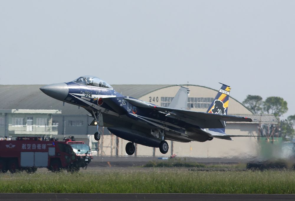 これは2020.10.14(水)に新田原基地で撮影した23SQの創隊20周年記念塗装F15DJのRW28編隊離陸です。