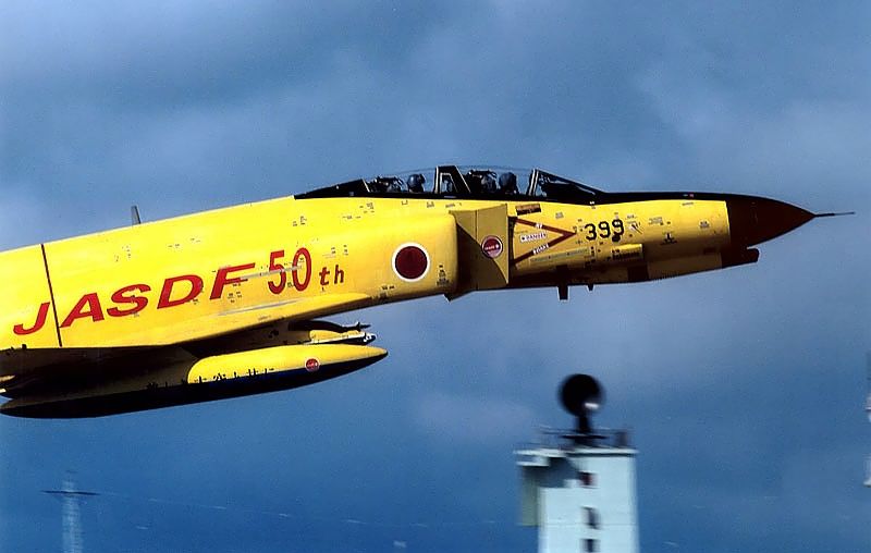 これは新田原基地の301SQ 航空自衛隊創設50周年記念塗装のF4EJ改です。