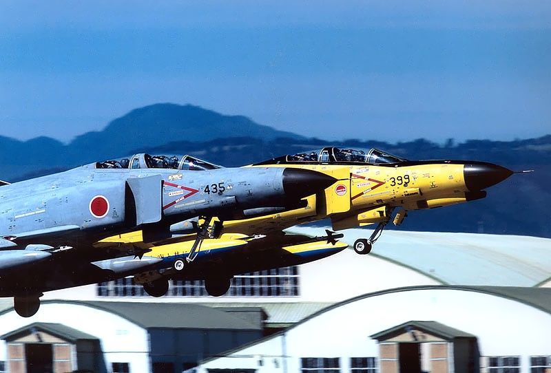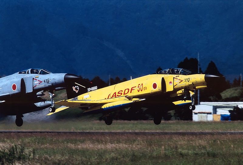 これは2004年10月上旬に撮影した新田原基地の301SQ 航空自衛隊創設50周年記念塗装のF4EJ改の編隊離陸です。