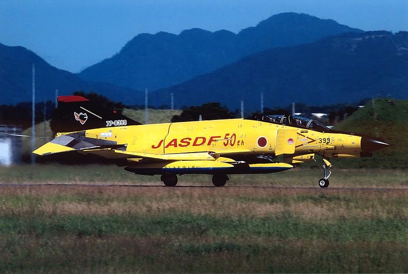 これは2004年10月上旬に撮影した新田原基地の301SQ 航空自衛隊創設50周年記念塗装のF4EJ改のRWタキシ―です。