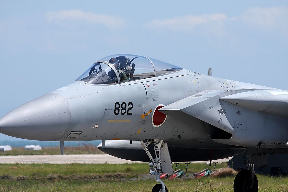 これは2018年5月21日(月)に築城基地で撮影した小松基地のAGR-882号機のRW25エンドのタキシ―です。