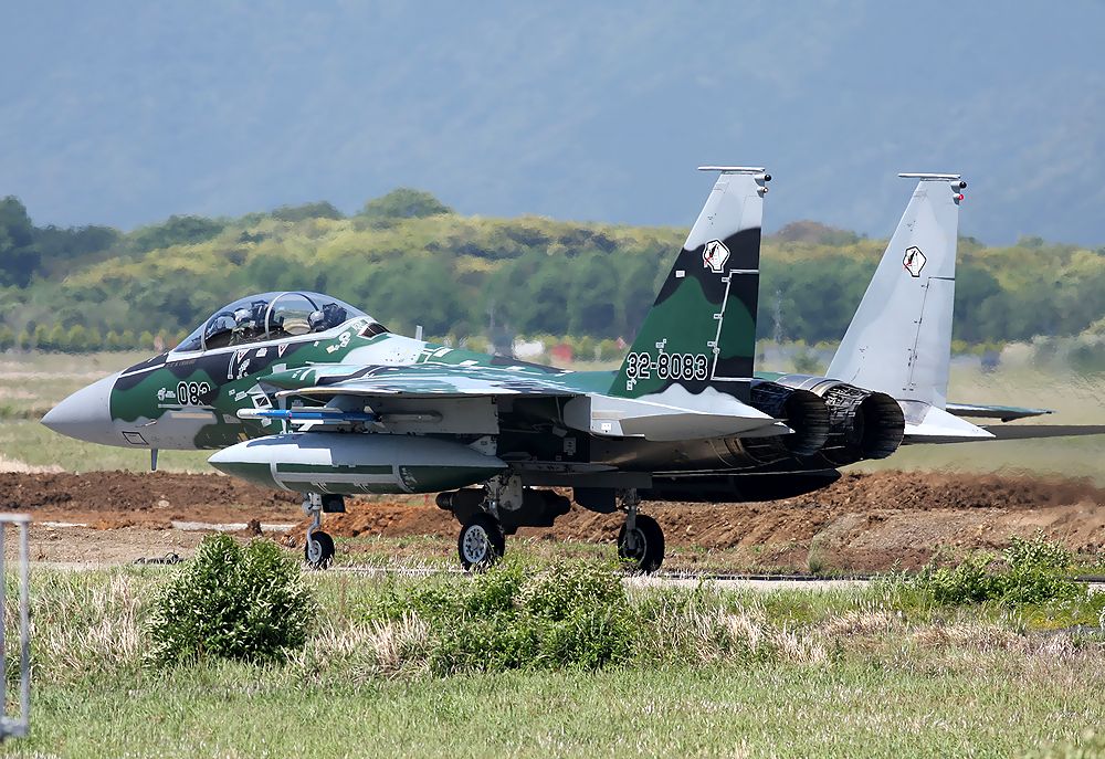 これは2018年5月21日(月)に築城基地で撮影した小松基地のAGR-083号機のRW25エンドのタキシ―です。