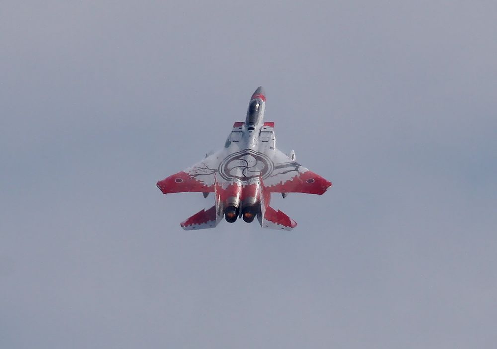 これは2019年3月4日(月)に新田原基地で撮影した305SQに40周年記念塗装機のハイレートクライムです。