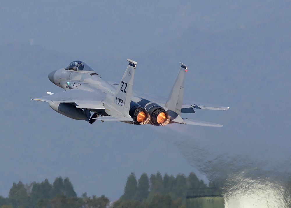 これは2018年10月30日(火)に新田原基地で撮影した嘉手納基地の44FS-F15の離陸です。
