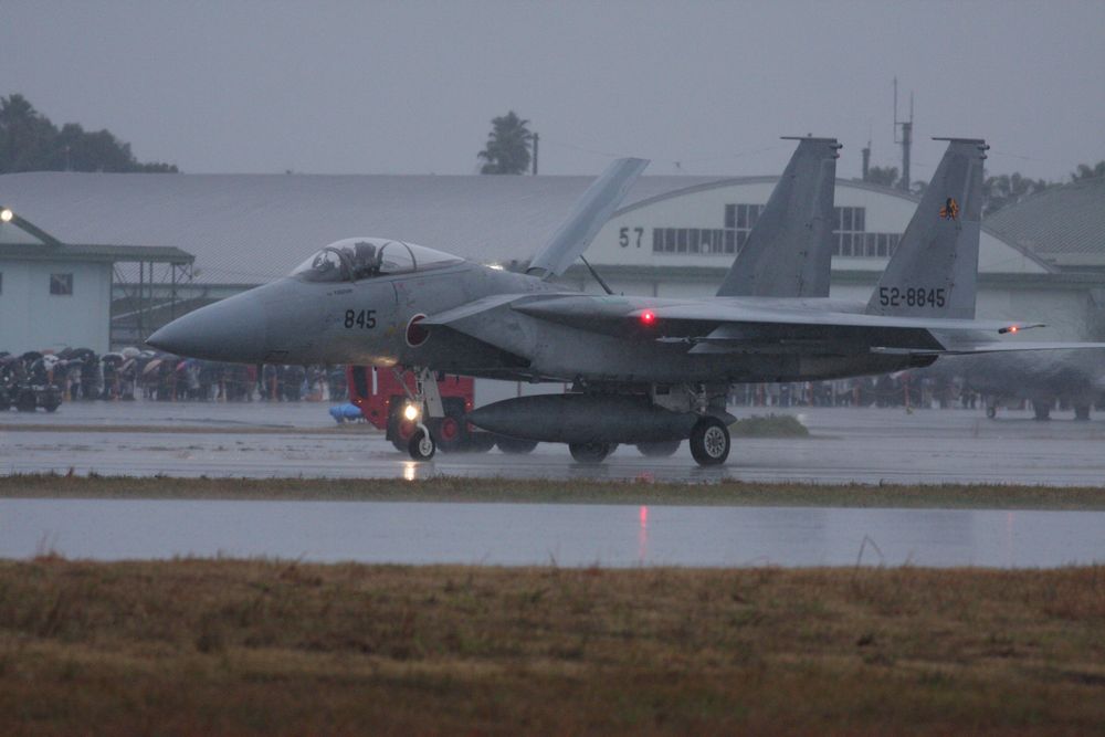 これは、デモフライトを終えた301SQ-F4、23SQ-F15、AGR-F15のRWタキシ―です。
