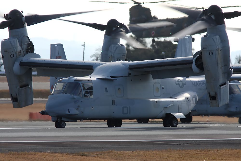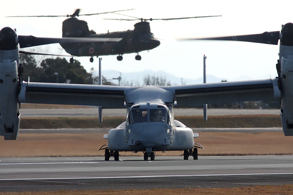 これは2017年12月13日に阿蘇くまもと空港隣接の高遊原分屯地で撮影したMV-22の離陸です。