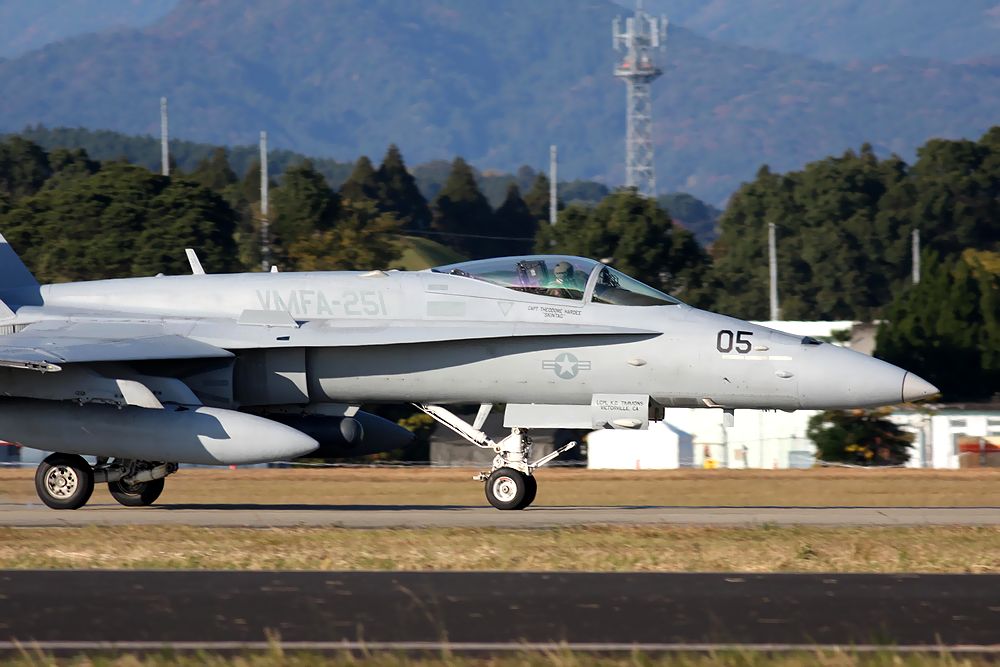 これは岩国基地から新田原基地に飛来した米海兵隊のFA18です。