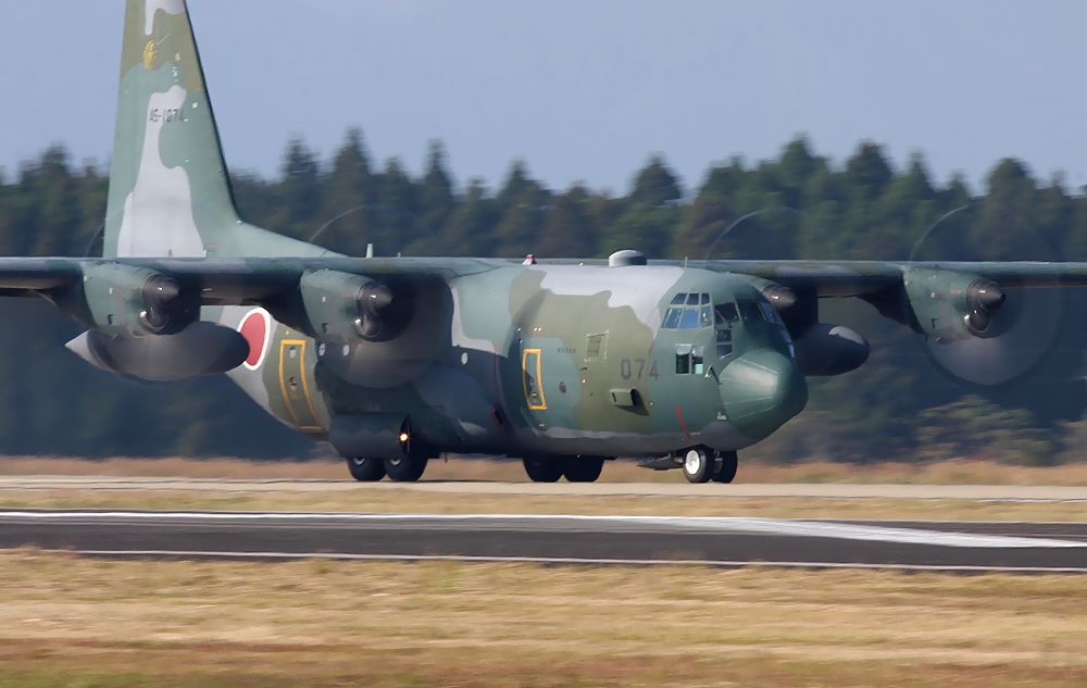 これは陸上自衛隊習志野駐屯地の第1空挺団のエアボーンのために離陸するC130です。