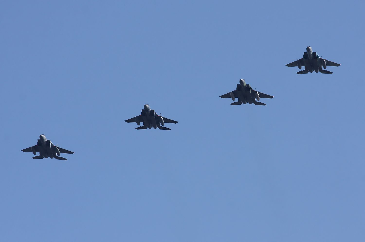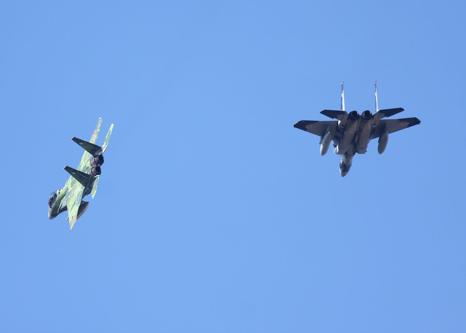 これは2022年12月14日に、新田原基地で撮影したAGRのF15の基地上空でのオーバーヘッドアプローチです。