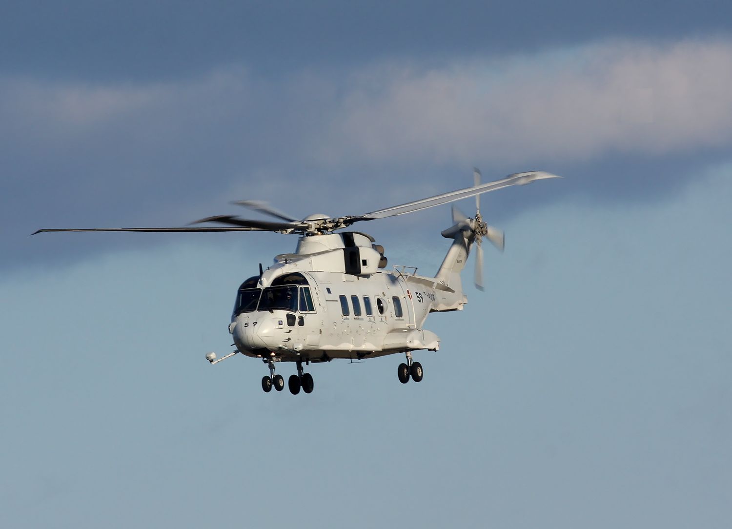 2022年12月14日に新田原基地で撮影した、海上自衛隊 岩国基地所属の掃海・輸送ヘリ MCH-101です。