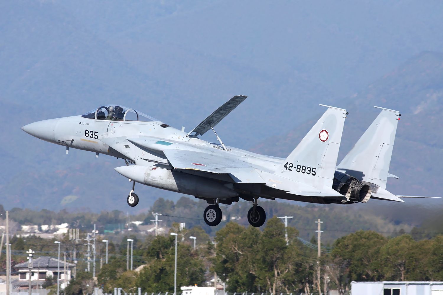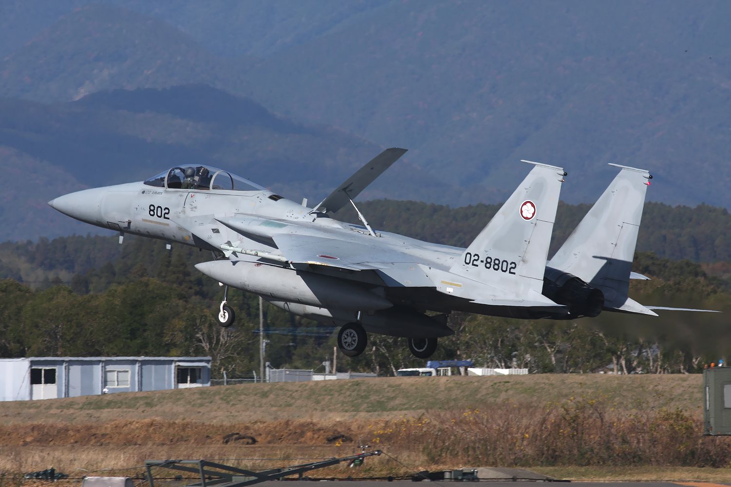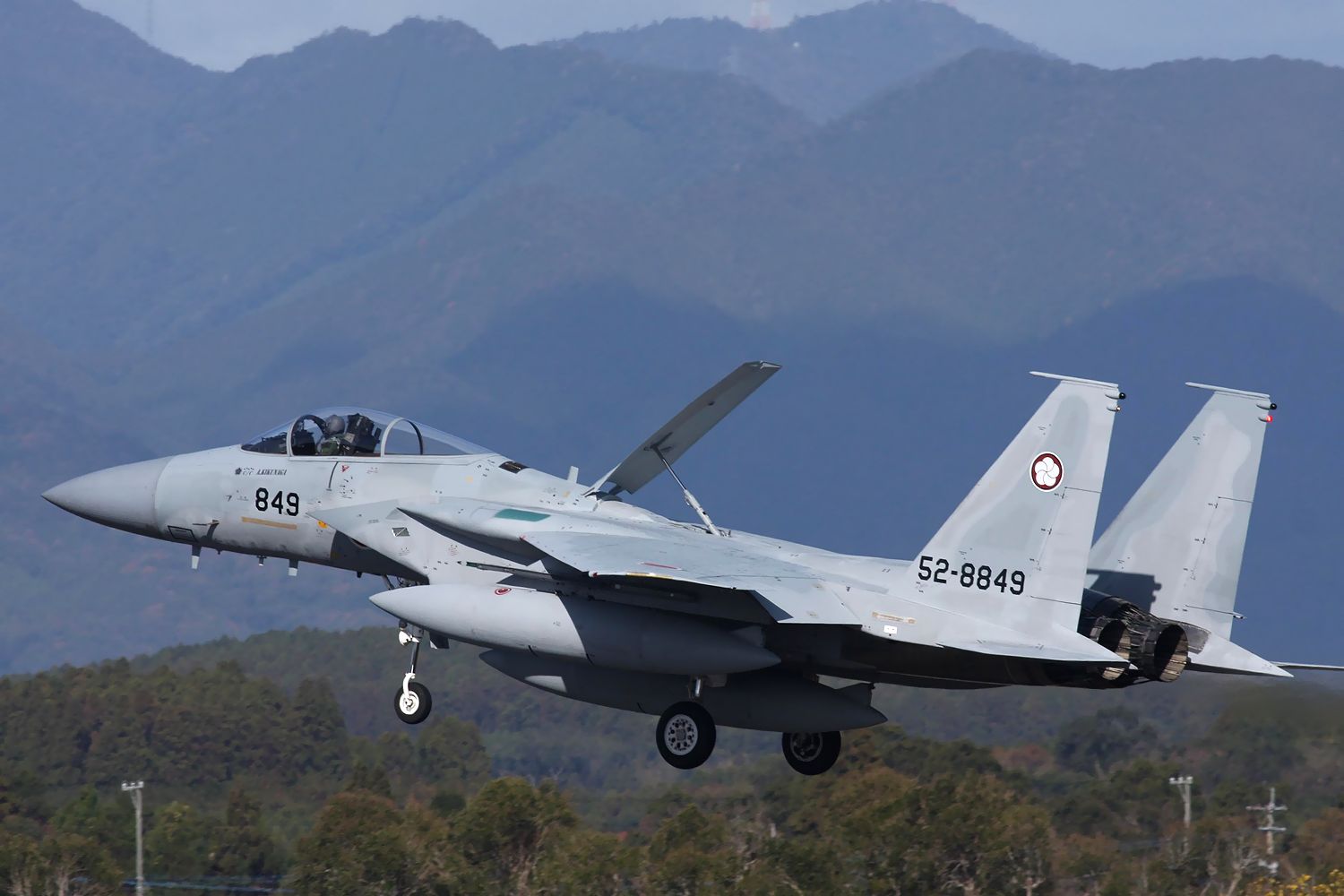 これは2022年12月14日に、新田原基地で撮影した305SQのF15の着陸です。