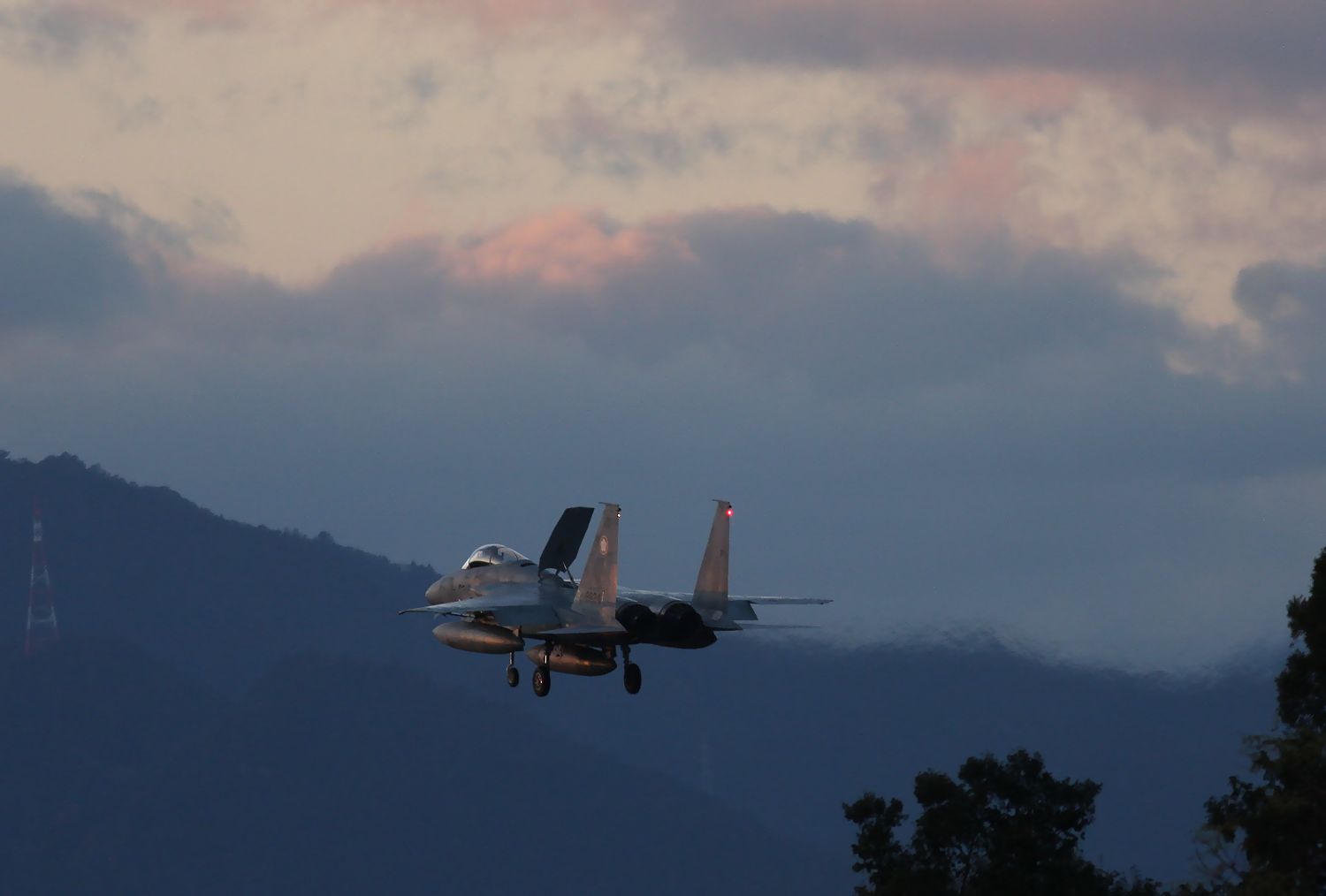 これは2022年12月14日の夕暮れに、新田原基地で撮影した305SQのF15の着陸です。